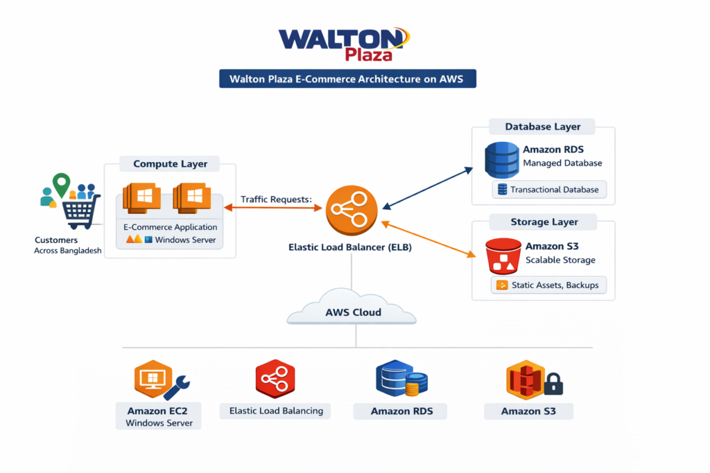 Walton Plaza’s e-commerce platform needed a stronger, more scalable hosting foundation to support nationwide customers and growing online demand. The existing hosting environment lacked the elasticity and resilience required for high-traffic events, seasonal campaigns, and sudden spikes in concurrent users. As a result, performance limitations—such as slower page loads, inconsistent responsiveness, and potential checkout delays—created a risk of poor customer experience and lost conversions during peak periods.